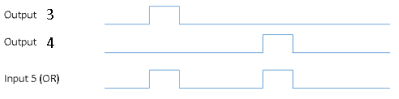 In our example, input 5 is the OR signal. If either output 3 OR output 4 are turned on, input 5 will be turned on as a result.