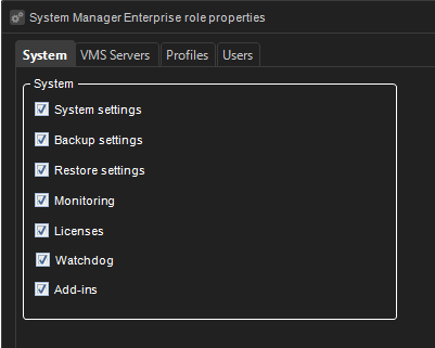 To enable the functionality - check the "System manager enterprise role" tickbox for the user group and click the "wrench" icon to edit the details for this group.