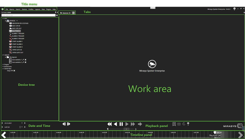 Hier sehen Sie eine Übersicht über die verschiedenen Komponenten der Spotter-Benutzeroberfläche.