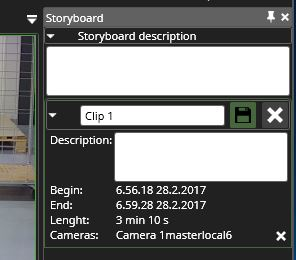 Der Clip befindet sich noch im Bearbeitungsmodus (weiße Textfelder und das Symbol „Speichern“).Der Name oder die Beschreibung des Clips kann bearbeitet werden. Jede Änderung der Start- oder Endzeit des Clips oder des Kamerainhalts wird immer noch im Inhalt des Clips widergespiegelt.Wenn keine Bearbeitung erforderlich ist, klicken Sie auf die Schaltfläche „Speichern“.