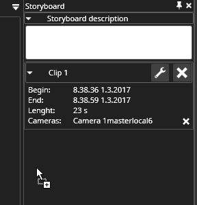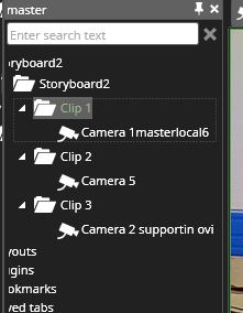Dieser Vorgang kann wiederholt werden, um dem Storyboard weitere Clips hinzuzufügen. Wenn es schwierig wird, eine neue Kamera auf der Liste abzulegen, empfiehlt es sich, die neue Kamera auf der Bildlaufleiste abzulegen. Dadurch wird die Kamera als letzter Clip hinzugefügt. Wenn eine Kamera über einem vorhandenen Clip in der Storyboard-Liste abgelegt wird, wird sie diesem Clip als zusätzliche Kamera hinzugefügt.
