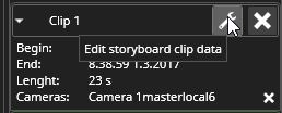 Clips erscheinen im Storyboard immer in zeitlicher Reihenfolge, sortiert nach der Startzeit des Clips. Ein Clip kann später zum Bearbeiten geöffnet werden, indem Sie auf die Schaltfläche "Bearbeiten" klicken.