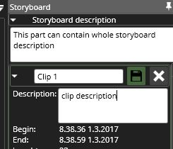 Die Beschreibungen werden den Zuschauern des Storyboards als Untertitel angezeigt.Der Zeitpunkt der Anzeige der Beschreibungen richtet sich nach der Startzeit des Clips oder Lesezeichens.Beschreibungstexte werden auch im HTML-Textformat in den Zielordner zur weiteren Verwendung für die Zielgruppe exportiert .
