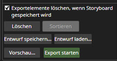 Es ist möglich, Storyboard-Entwürfe zu speichern, indem Sie auf die Schaltfläche „Entwurf speichern…“ klicken.