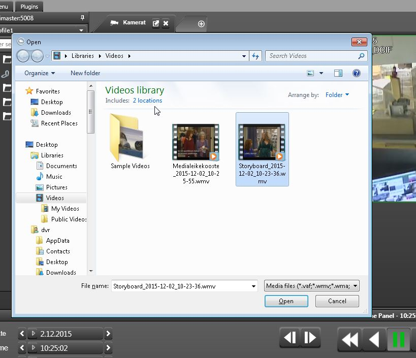 Ein Storyboard kann mit Spotter oder mit dem SpotterPlayer angezeigt werden.Medien können durch Drücken der F4-Taste oder durch „Medien öffnen“ aus dem Dateimenü oder durch Doppelklicken auf die Storyboard-Datei im Dateisystem geöffnet werden.