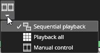 Der sequentielle Modus ist der Standardwiedergabemodus. Es spielt die Clips in zeitlicher Reihenfolge ab, geordnet nach der Startzeit des Clips. Es spielt jeden Clip vollständig ab, bevor es zum nächsten wechselt, sodass die Zeit in diesem Modus rückwärts springen kann. Der Benutzer kann den Wiedergabemodus jederzeit wechseln. Wechselt er in den „Playback all“-Modus, werden alle Kameras im Storyboard geöffnet. Beachten Sie, dass, wenn der Benutzer in diesem Modus zu spielen beginnt, die Zeit nicht rückwärts springt, wenn sich Clips überlappen, sondern das Storyboard in Echtzeit abgespielt wird. Im manuellen Modus wird keine Kamera automatisch geöffnet oder geschlossen, und der Benutzer kann aus der Gerätestruktur auswählen, welche Kamera geöffnet werden soll.