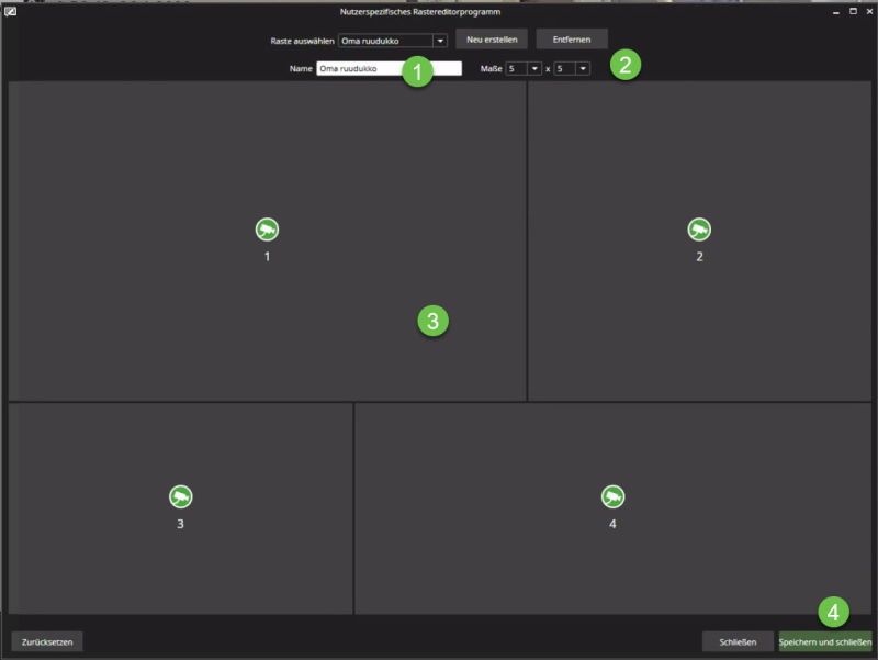 Wählen Sie den erforderlichen benutzerdefinierten Kamerarasternamen aus