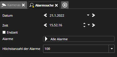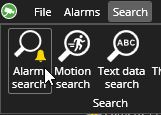 Die Alarmsuche kann über das Menü „Suche“ geöffnet werden.