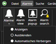 Die Sichtbarkeit der Alarmliste wird über das Menü Ansicht gesteuert.