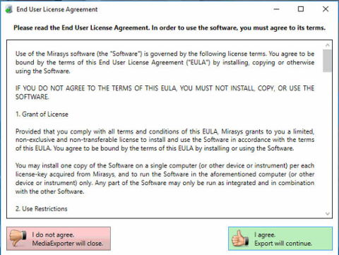 Klicken Ich stimme zu. Der Export wird fortgesetzt