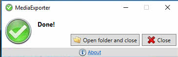 Wenn MediaExporter den Videoexport abgeschlossen hat, kann der Benutzer auf den Standortordner zugreifen, indem er auf Ordner öffnen und schließen klickt