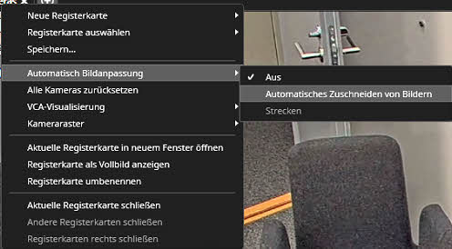 Dies funktioniert am besten im automatischen Ansichtsmodus, wenn sich 4 oder 9 Kameras auf dem Bildschirm befinden. Im statischen Rastermodus passt das automatische Zuschneiden die Kameras an das Seitenverhältnis der festen Rasterzelle an.Diese Option ist nur für feste oder benutzerdefinierte Raster verfügbar.