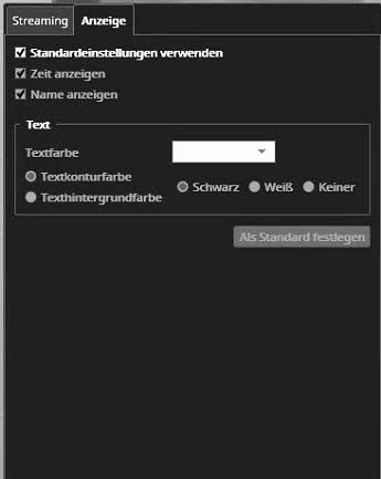Die Anzeigeeinstellungen steuern, ob der Name und der Zeitstempel über der Kamera angezeigt werden und welche Farbe für den Text und die Textumrandung verwendet wird.Wenn der Benutzer eine schöne Farbe findet, die er bevorzugt, kann er eine neue globale Standardeinstellung für alle Kameras festlegen.