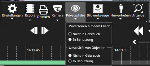 Hier erhalten Sie möglicherweise Zugriff zum Ein-/Ausschalten der Privatzonen (wenn Sie über ausreichende Berechtigungen dazu verfügen und die Funktionalität für die spezifischen Kameras aktiviert wurde).
