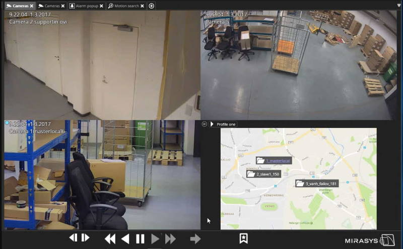 Wenn für das ausgewählte Profil eine Karte definiert ist, kann das Profilkarten-Plugin die Karte und ihre Geräte anzeigen. Die Karte kann eine separate Registerkarte sein oder in eine Kameragitterzelle eingebettet sein.