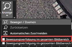 Wenn Bewegung im gezoomten Bereich verfolgen aktiviert ist, folgt Spotter automatisch der Bewegung in dem Bereich des Bildes, der auf den gezoomten Zustand eingestellt wurde.