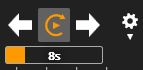 Wenn die Tour läuft, wird dies mit einem rotierenden orangefarbenen Pfeil angezeigt. Die Kameraränder sind ebenfalls orange hervorgehoben.