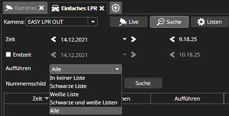 Wählen Sie LPR-Kamera in der oberen linken Ecke