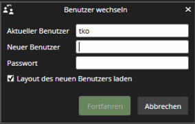 Wenn Benutzer wechseln ausgewählt ist, wird der aktuelle Benutzer angezeigt.
