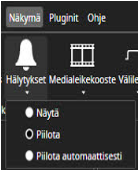 Hälytysluettelon näkyvyyttä voidaan muokata Näkymä-valikosta
