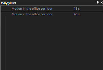 Hälytyksen nimen takana on ajastin, joka näyttää kuinka kauan sitten hälytys käynnistettiin.Yksikkö voi olla sekunneissa, minuuteissa ja tunneissa.