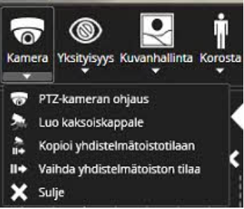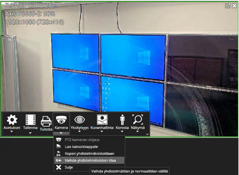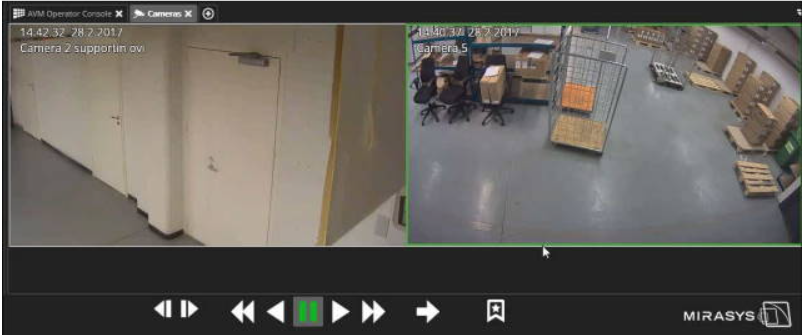 Kun tietty määrä kameroita on korostettu tällä tavalla, ne ovat sekatoistotilassa.Muut kamerat, joita ei ole valittu, ovat aina reaaliaikaisia.Sekatoistossa olevia kameroita voidaan nyt ohjata aikaliukusäätimellä, toistosäätimillä tai joystick jog-wheel.