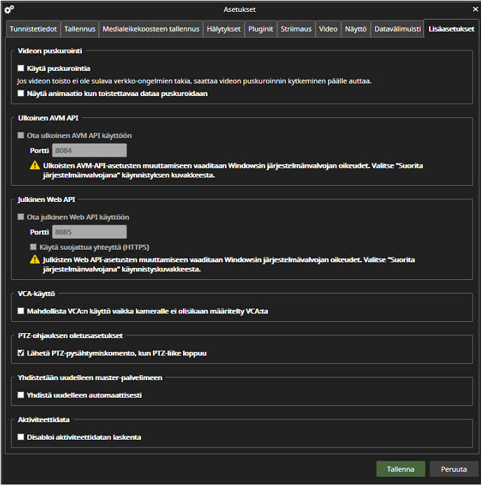 Lisäasetukset (Asetukset)