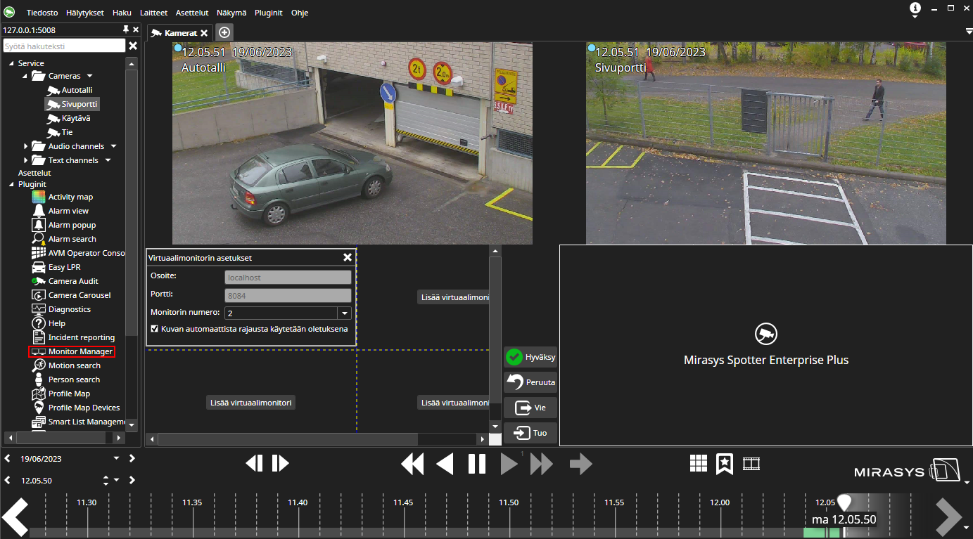 Käyttäjä voi ohjata Monitor Manageria laiteruudukosta samalla, kun näkee kamerat samassa Spotter-ikkunassa. Useita Spotter-ikkunoita ja näyttöjä ei tarvita.