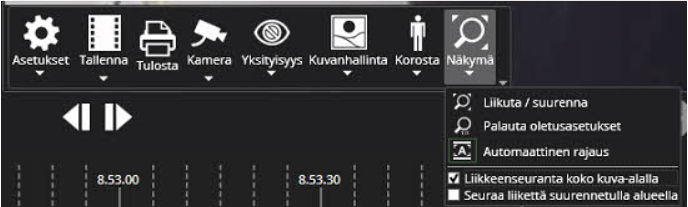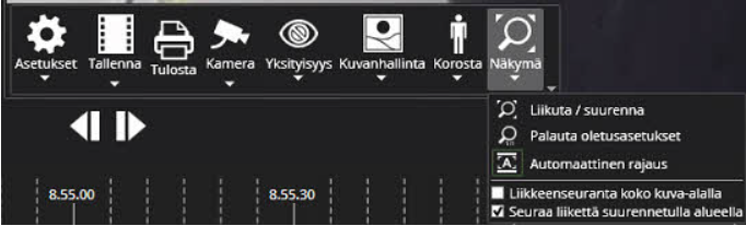 Kun Seuraa liikettä zoomatulla alueella on käytössä, Spotter seuraa automaattisesti liikettä sillä kuvan alueella, joka on asetettu zoomatulle tilaan.