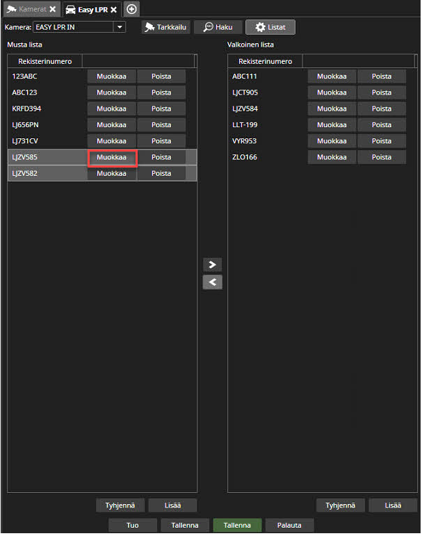 Valitse rekisterikilpi listalta