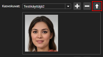 Yksi kasvokuvista on oletuskuva, joka näytetään pikkukuvana plugineissa ja listoilla. Kuvan asettaminen oletuskuvaksi tapahtuu valitsemalla kuva valikosta ja klikkaamalla Aseta valittu kasvokuva oletuskuvaksi nappulaa: