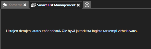 Jos list management palveluun ei ole yhteyttä tai identiteettien / listojen latauksessa tapahtuu virhe, näytetään allaoleva virheilmoitus:
