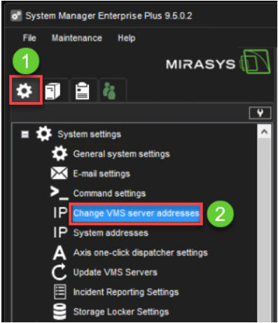 2. Valitse Muuta VMS-palvelimien osoitteita