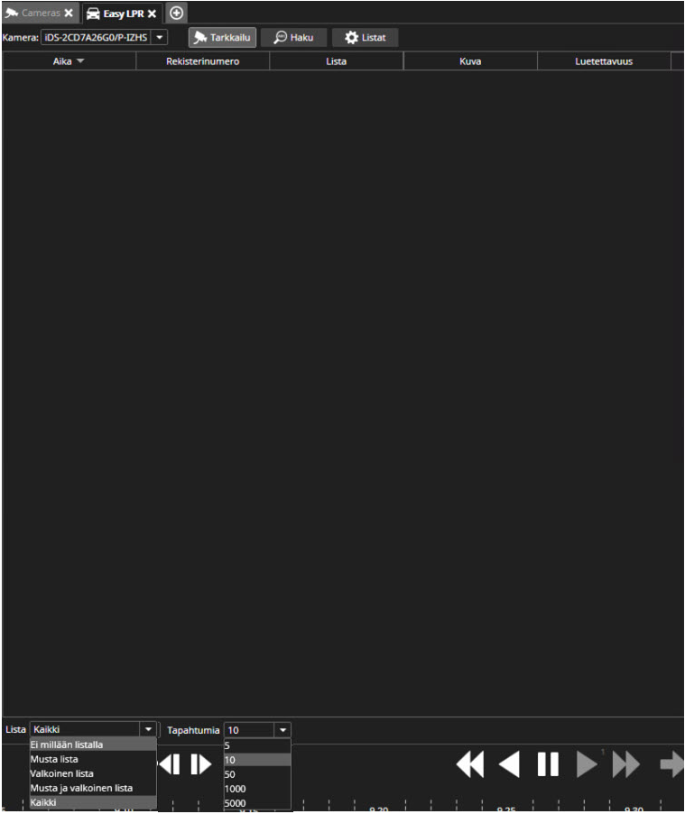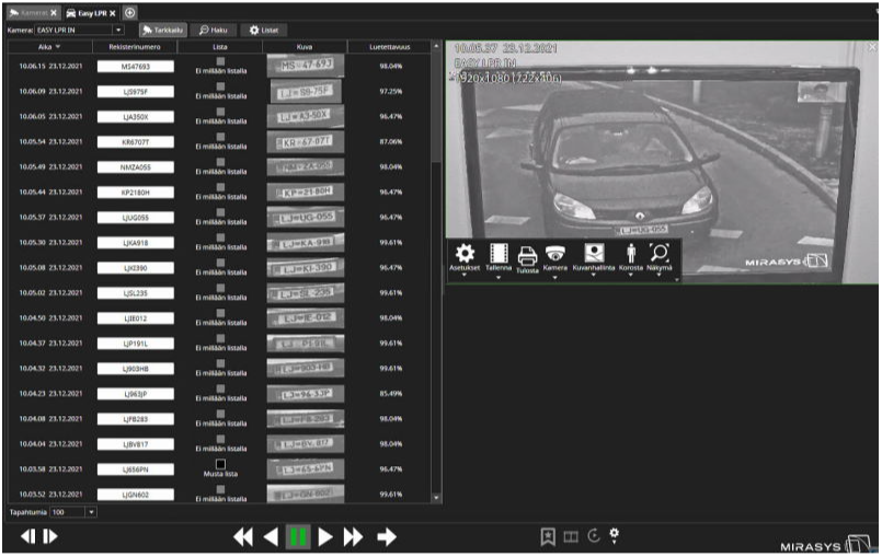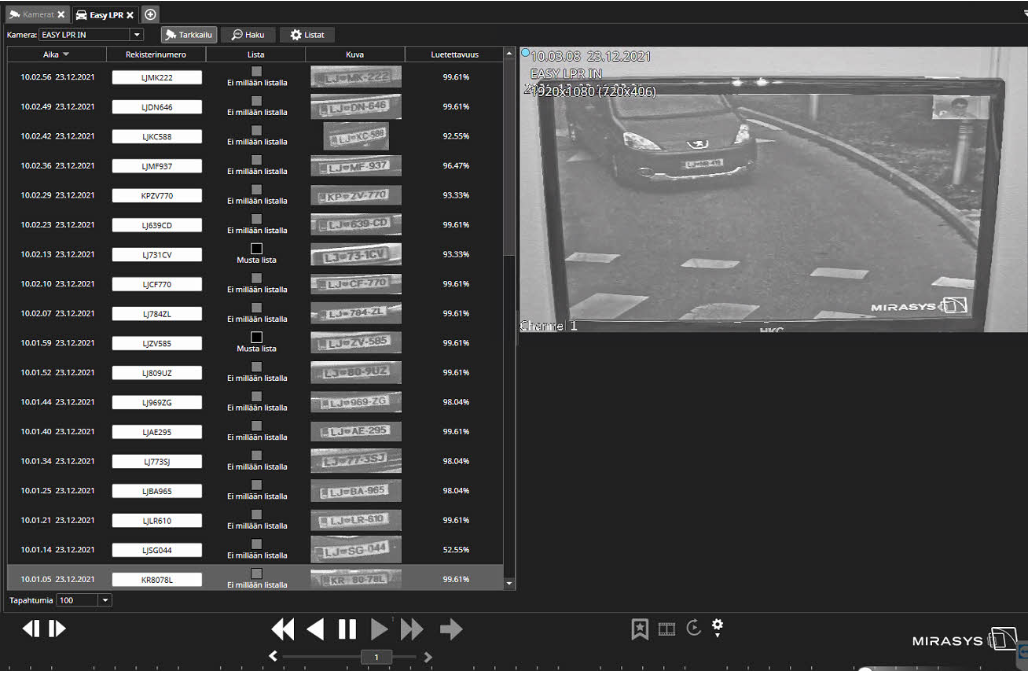 Reaaliaikainen näkymä LPR-kamerasta