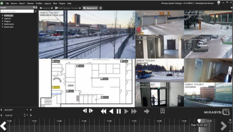 Työalue on Spotter-ikkunan alue, jossa laitteiden sisältöä voi tarkastella.Kun työalueelle lisätään kameroita ja muita laitteita, ne avaavat automaattisesti streamin työalueen toisto- tai live-asentoon.