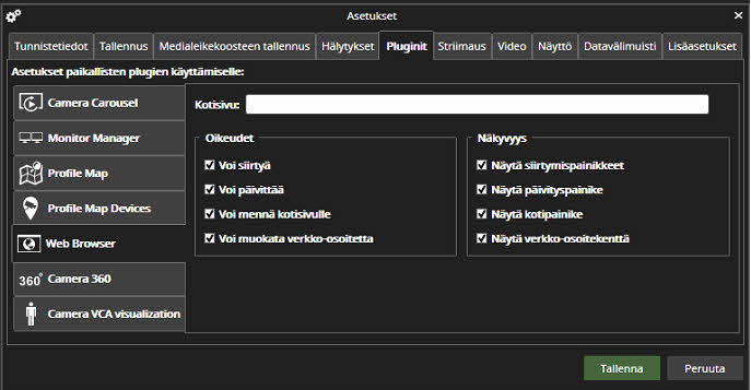 Ohjainten käyttöoikeudet ja näkyvyys, joilla voidaan hallita, voiko käyttäjä navigoida, päivittää, palata kotisivulle ja muokata URL-osoitetta.