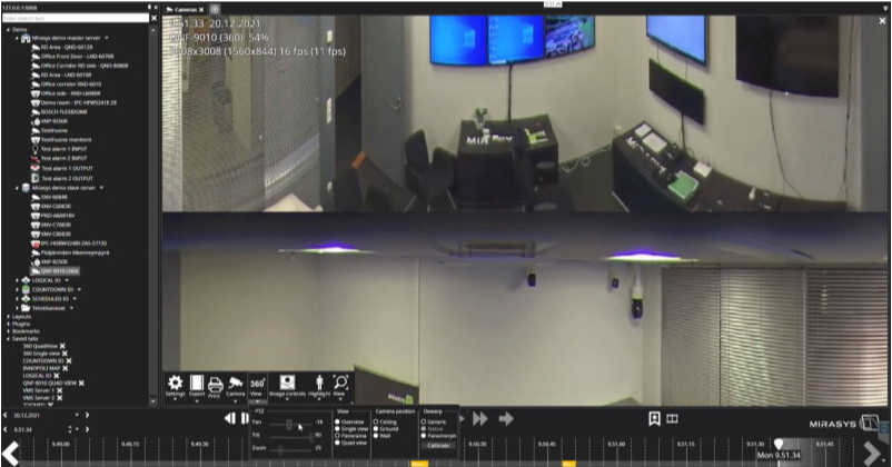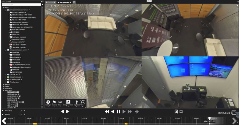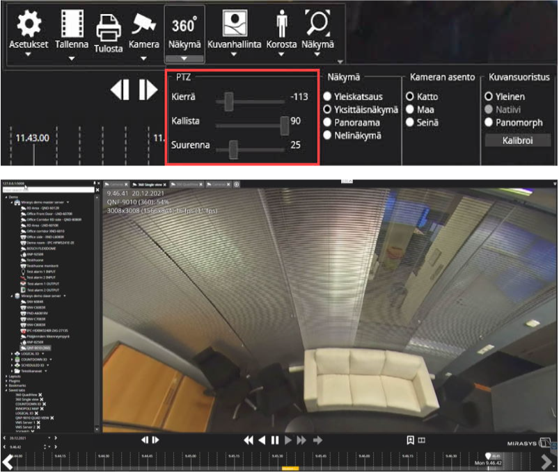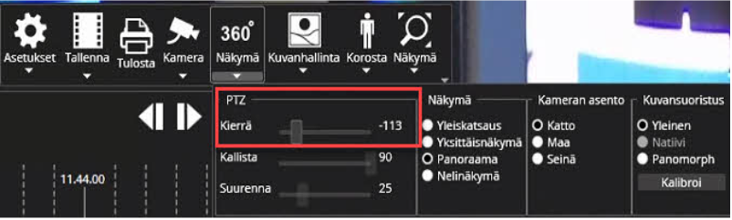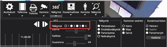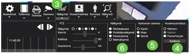 360 näkymän työkalurivin ohjauksen avulla voit määrittää, kuinka Spotter-asiakasohjelma poistaa (suoristaa) 360 asteen kameran kuvan.