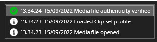 Jos media on aito, Spotter Playerille ja Spotterille näytetään ilmoitus: Mediatiedoston aitous on vahvistettu