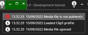 Jos media ei ole aito, Spotter Playerille ja Spotterille näytetään ilmoitus: Mediatiedosto ei ole aito