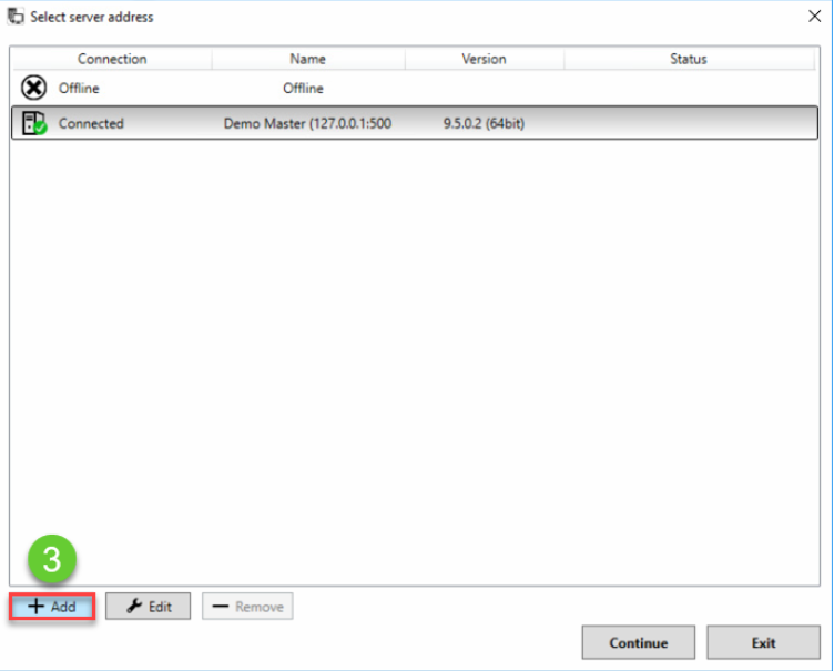 8. Luo yhteys valittuun VMS-palvelimeen napsauttamalla Jatka