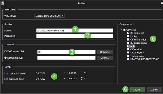 The archive is a tool for material backup and copying a larger amount of the material from multiple cameras.