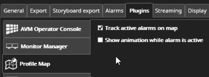 There is also a setting for turning the alarm "pulse" animation on or off. Profile maps have the same kind of alarm filtering settings as the Alarm popup so that in the multiple alarm monitor case, it can be set to filter a certain number of active alarms for the map position reaction.