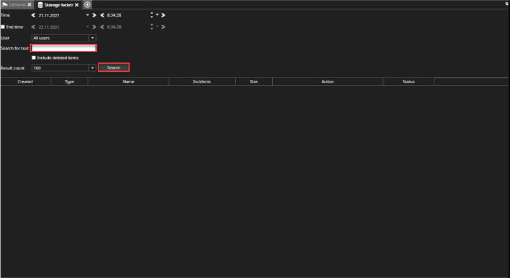 Enter free text to the Search for text field(text from Name, Description and Incident numbers fields)