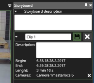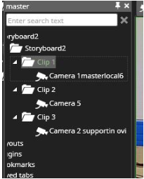 This same process can be repeated to add more clips to the storyboard. When it becomes difficult to drop a new camera to the list, the recommended way is to drop the new camera to the scroll bar.This will add the camera as the last clip. If a camera is dropped on top of an existing clip in the storyboard list, it will be added to that clip as an extra camera.
