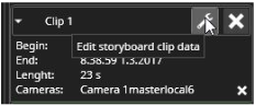 Clips appear in the storyboard, always in time order, ordered by the clip's start time. A clip can be opened for editing later by pressing the "Edit" button.