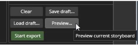 During the construction of a storyboard, it is possible to preview the storyboard by pressing the "Preview" button.