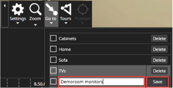 The zoom settings menu allows controlling the camera zoom. The camera zoom can also be controlled from the keyboard or the mouse wheel.
