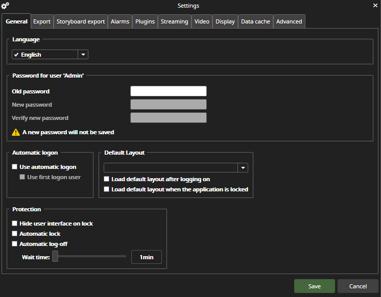 Example: User A logs on to Spotter and switch to User B. Under user B, select ‘Use automatic log-on,’ switch to User C, and under User, C log off Spotter. Next time when Spotter is started, it is automatically logged on as User C (was the user when logged off).