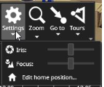 The zoom settings menu allows controlling the camera zoom. The camera zoom can also be controlled from the keyboard or the mouse wheel.