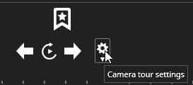 When the tour is running, it is indicated with a rotating orange arrow. The Camera borders are also highlighted in orange.